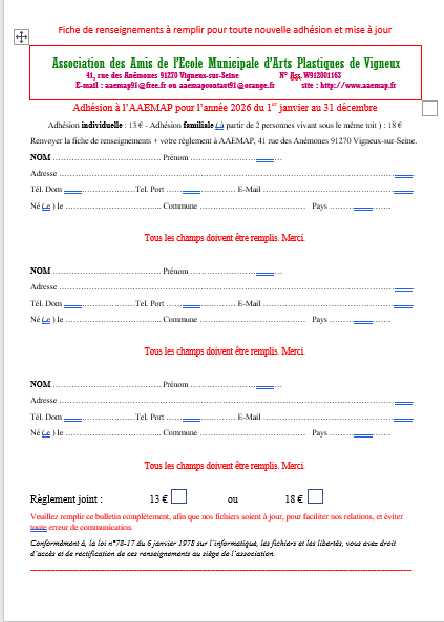 Bulletin d’adhésion 2026